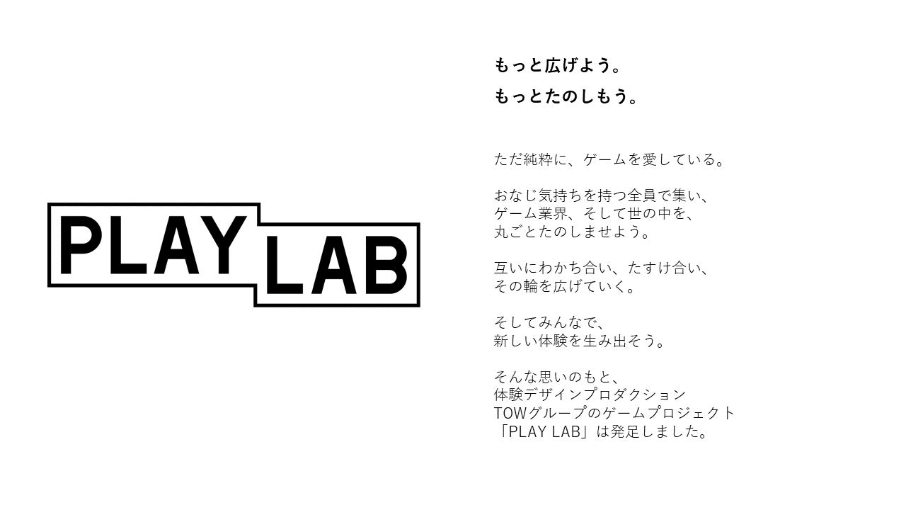 TOWグループのゲームプロジェクト「PLAY LAB」は発足しました。