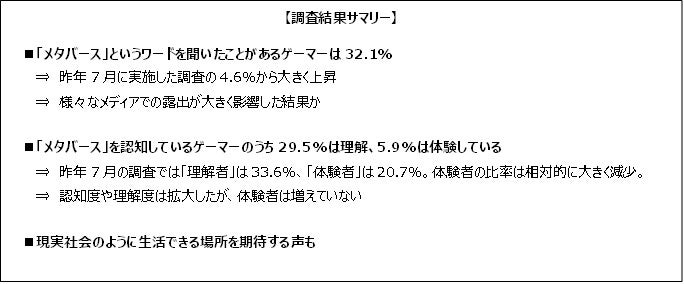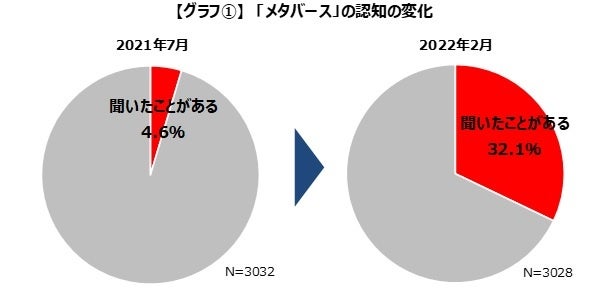 7月調査時の認知4.6%より大きく上昇。「メタバース」という単語を聞いたことがあるゲーマーは32.1%