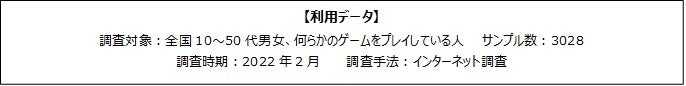 今年2月の調査時点ではゲーマーの約3人に1人は「メタバース」という単語を認知しており、Meta社の話題をはじめ、昨年の様々な情報露出により身近なワードになってきているようです。オンラインゲームや各種SNSと親和性の高いゲーマーにとって、「メタバース」というワードやコンテンツ自体が、興味/関心の対象になっていることが推察されます。