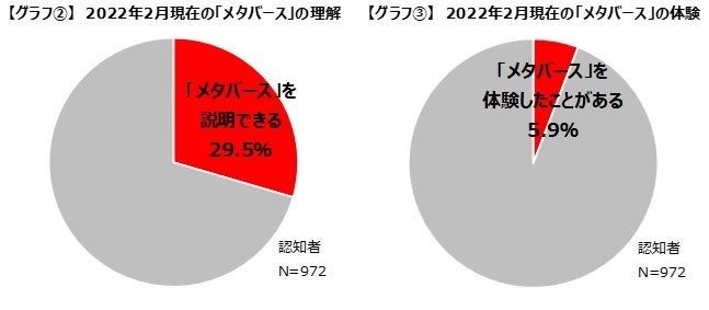 「メタバース」というワードを聞いたことがあると答えたゲーマーの中で、「メタバースを説明できる」と答えたゲーマーは29.5%、「なんらかのメタバースを体験したことがある」と答えたゲーマーは5.9%でした。【グラフ②】【グラフ③】