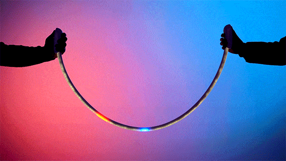 「Gameic」はTV画面でもVR空間でもなく、1本の長い線を移動する光点をコントロールして遊ぶという、今までになかった一次元ゲームコンソールです。