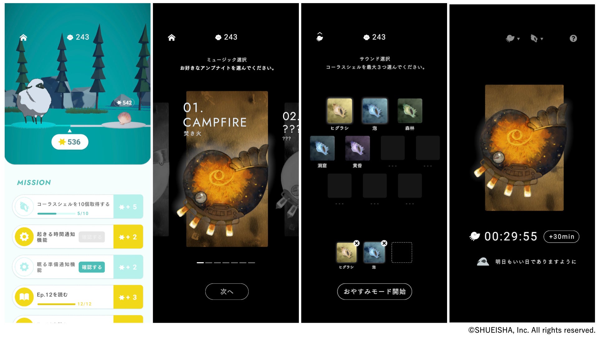 ひつじの「ヨル」と共に、自然の音を奏でる不思議な貝を集めて、あなたの夜の時間を充実させていきましょう。