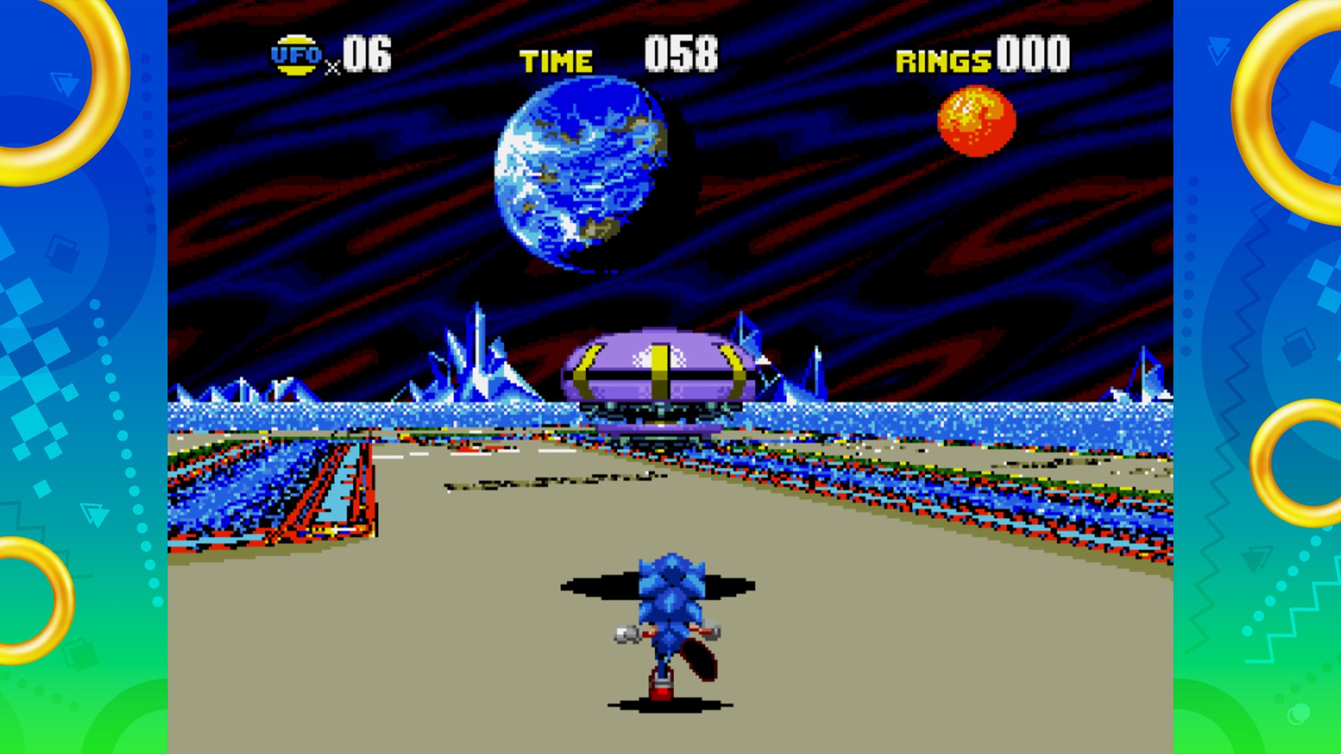 16:9の大画面でゲームが楽しめるだけでなく、タイムオーバーとコンティニューがなくなったことで、ゲームオーバーを気にせずソニックのスピードを楽しむことができる「アニバーサリーモード」のほか、挑戦者を待ち受ける選りすぐりのお題にチャレンジできる「ミッション」、開発当時の秘蔵資料など、初出しコンテンツを含む資料を開放して楽しむことができる「ミュージアム」など、たくさんの新要素とともにパワーアップしています。